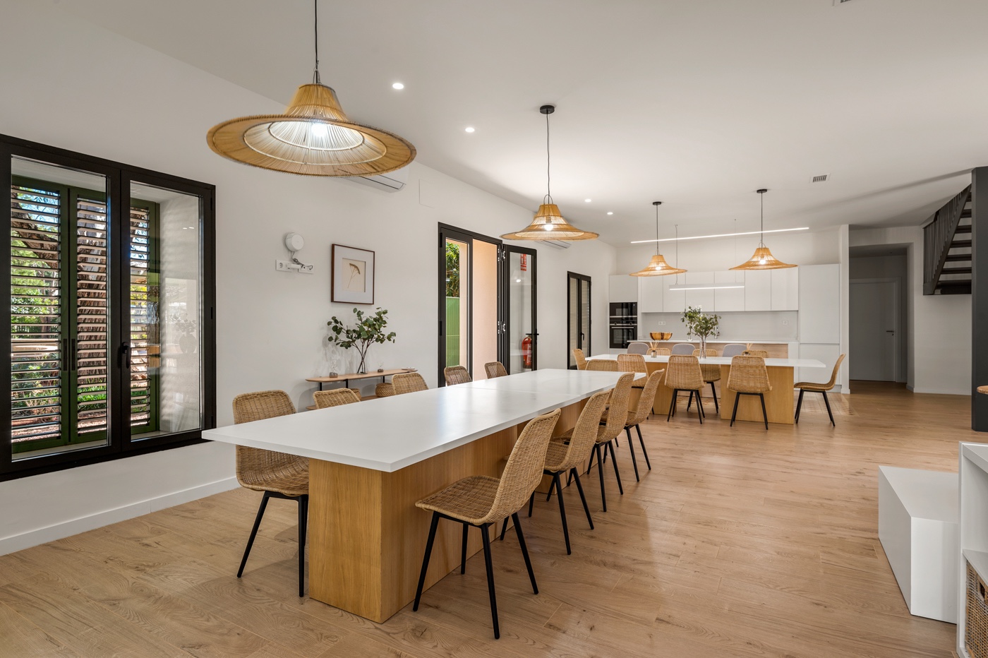 Appartement avec 2 chambres spacieuses et un grand salon avec cuisine ouverte, 2 salles de bains, situé dans une résidence exclusive à Dénia, à seulement 200 m de la plage. Le logement est terminé, mais non meublé. La cuisine est équipée d’appareils Siemens : four, micro-ondes et plaque à induction. Le réfrigérateur et le lave-vaisselle doivent être achetés séparément. Les chambres disposent de placards intégrés. Dans le couloir, un espace est prévu pour la machine à laver ainsi qu’un placard de rangement. La résidence est unique, située au sein d’un parc historique avec une végétation mature et luxuriante. Les résidents disposent des équipements suivants : conciergeriepiscinepiscine pour enfantsjardinsespace de co-workingsalle de sportsalle polyvalente pour événements et réceptionsparking souterraincave / local de rangement L’appartement bénéficie d’une orientation ouest avec vue sur la mer et le port. Quartier calme, très verdoyant, avec des immeubles résidentiels de faible hauteur (jusqu’à 3 étages). Distances : Plage – 300 mSupermarché Masymas – 300 mCentre historique de Dénia – 900 m