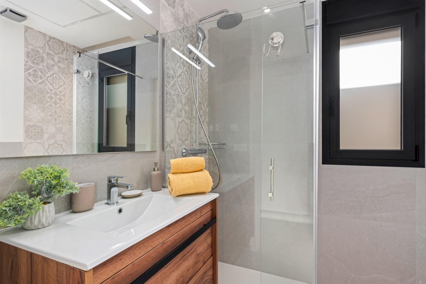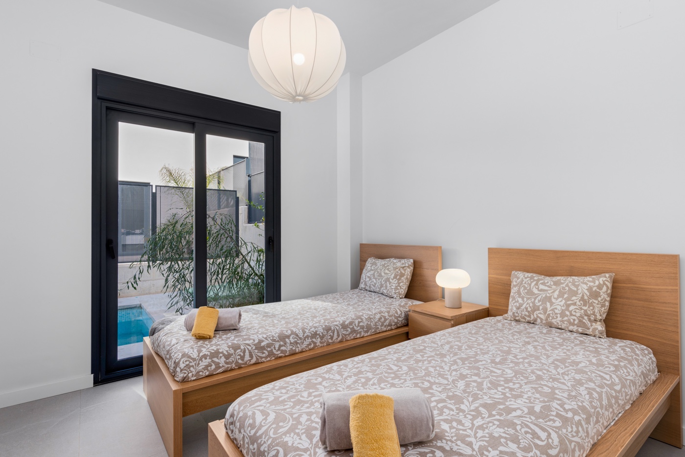 Maison jumelée moderne (semi-adosado) située dans un quartier calme de San Fulgencio, sur un terrain avec piscine privée et espace extérieur dédié à la détente. La propriété a été conçue pour que le jardin soit le prolongement naturel de l’espace de vie — de grandes baies vitrées apportent beaucoup de lumière naturelle et créent des pièces lumineuses, spacieuses et ouvertes sur l’extérieur. La propriété est répartie sur deux niveaux. Le rez-de-chaussée comprend un salon spacieux avec cuisine ouverte, offrant un accès direct au jardin. À ce niveau se trouvent également deux chambres indépendantes, une salle de bain accessible depuis le couloir, ainsi qu’une pièce de service séparée destinée à la buanderie et au rangement supplémentaire. Le premier étage constitue l’espace privé des propriétaires, avec une chambre disposant de sa propre salle de bain et d’un accès à une grande terrasse ensoleillée, idéale pour se détendre au quotidien. La maison a été construite en 2022, offrant un standard moderne et une distribution fonctionnelle des espaces. L’emplacement combine confort de vie et proximité de la nature — la propriété se situe à environ 5 km de la plage et à environ 30 km de l’aéroport d’Alicante-Elche. À proximité se trouvent des dunes naturelles, de larges plages de sable et un environnement résidentiel paisible. Cette propriété représente une excellente option aussi bien pour une résidence principale que pour un investissement, grâce à sa distribution fonctionnelle, son architecture contemporaine et son emplacement avantageux.